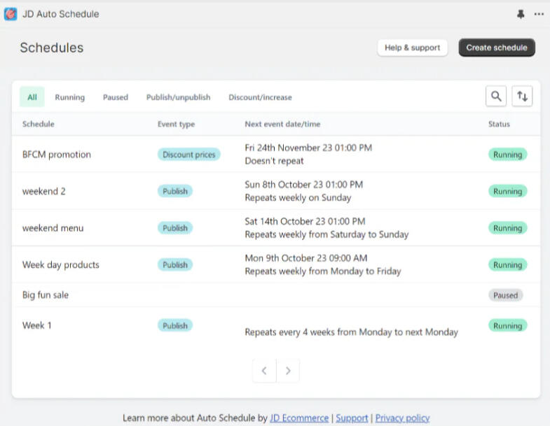 Streamline your Shopify operations, maximize sales, and reclaim your time with Auto Schedule – the ultimate app for automating discounts, product visibility, tags, and more.Stop manually setting price changes and publishing products!