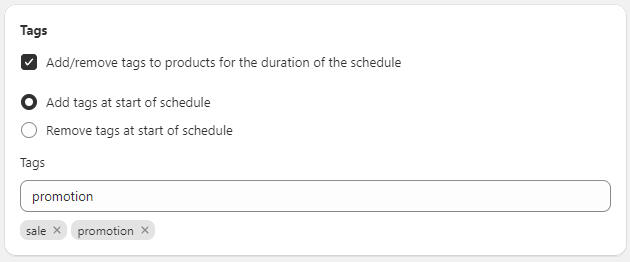 Automatically add or remove product tags, enabling advanced automations and better organization for your store.