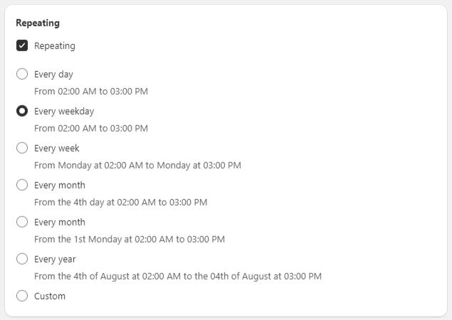 Set one-off events, schedules that revert after a specific end date, or incredibly flexible repeating schedules. Imagine setting a sale for "every third Tuesday of the month" or "Mondays and Wednesdays every week" – Auto Schedule makes it possible!
