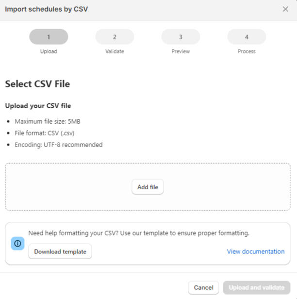 With our unique CSV import functionality, you can set up 100s of schedules in just seconds, saving hours and hours of work.